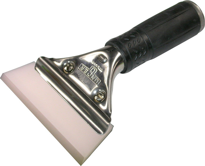 Ready-to-use window film installation squeegee that uses an Angled Clear Max Blade (HS203A) and specially modified Unger Pro handle that eliminates the latch on the underside of the handle. The modified handle is not available for sale but replacement blades can be purchased separately as HS203A.
